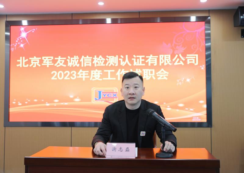 2023年12月18日,北京軍友誠信檢測認證公司(以下簡稱軍友誠信)召開2023年度工作述職會,會議由公司副總經(jīng)理謝志磊主持,軍友誠信全體員工參會。