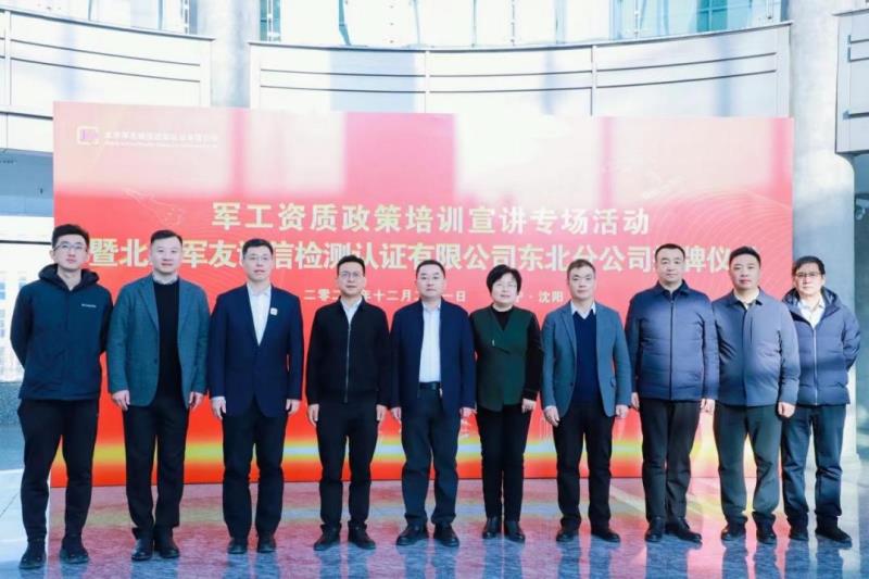 根據(jù)《關(guān)于進(jìn)一步推動新時代東北全面振興取得新突破若干政策措施的意見》文件精神,北京軍友誠信檢測認(rèn)證有限公司(簡稱軍友誠信)作為國家國防科工局經(jīng)濟(jì)技術(shù)發(fā)展中心直屬單位,積極響應(yīng)號召,主動擔(dān)當(dāng)作為,在沈陽設(shè)立東北分公司。軍友誠信結(jié)合分公司成立揭牌活動,面向全省相關(guān)企業(yè),舉辦軍工行業(yè)資質(zhì)政策培訓(xùn)宣講專場活動。